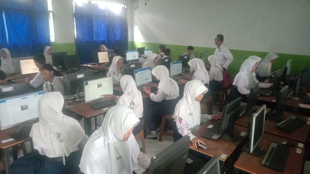 Nganjuk, 24/02/2026 – Sebanyak 254 siswa kelas IX MTsN 7 Nganjuk mengikuti kegiatan Simulasi Tes Kompetensi Akademik (TKA) Tahun 2026 yang dilaksanakan selama dua hari, Senin-Selasa, 23 – 24 Februari 2926 di laboratorium komputer madrasah. Kegiatan ini bertujuan untuk melatih kesiapan teknis dan akademik siswa dalam menghadapi TKA yang sesungguhnya.
