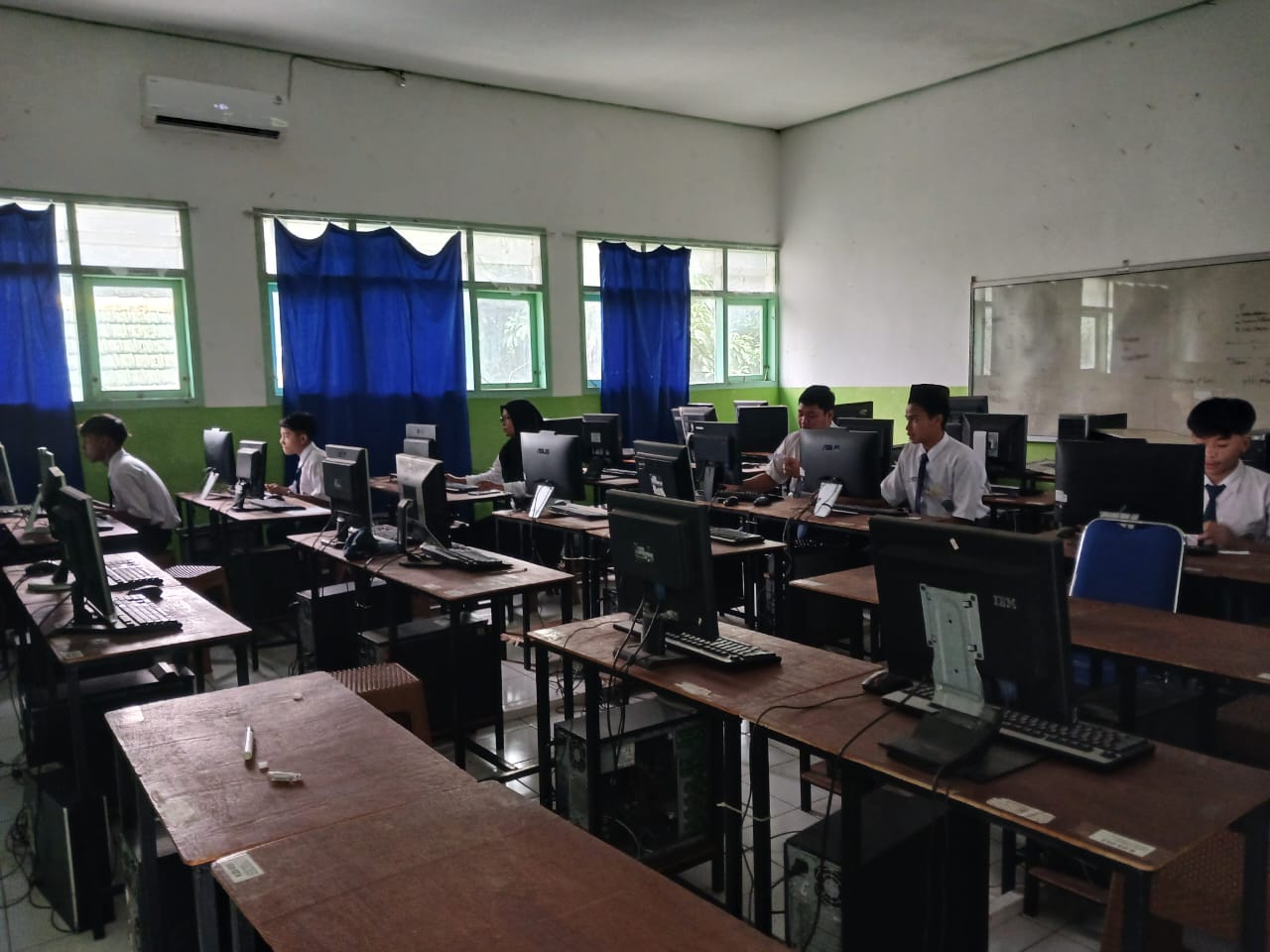 Bapak Ahmad Jauhari Musyafik, proktor madrasah memastikan seluruh perangkat berjalan optimal. “Alhamdulillah, selama dua hari pelaksanaan tidak ada kendala berarti. Server utama dan cadangan berfungsi dengan baik, jaringan stabil, dan siswa dapat login tanpa hambatan,” jelas beliau. Sementara itu, Bapak Budianto dan Ibu Zuhaini Farida, teknisi madrasah menegaskan bahwa kesiapan infrastruktur menjadi prioritas utama sebelum pelaksanaan simulasi. “Kami melakukan pengecekan perangkat komputer, jaringan LAN, sehari sebelum pelaksanaan. Antisipasi ini penting agar siswa dapat fokus mengerjakan soal tanpa gangguan teknis,” ungkapnya.