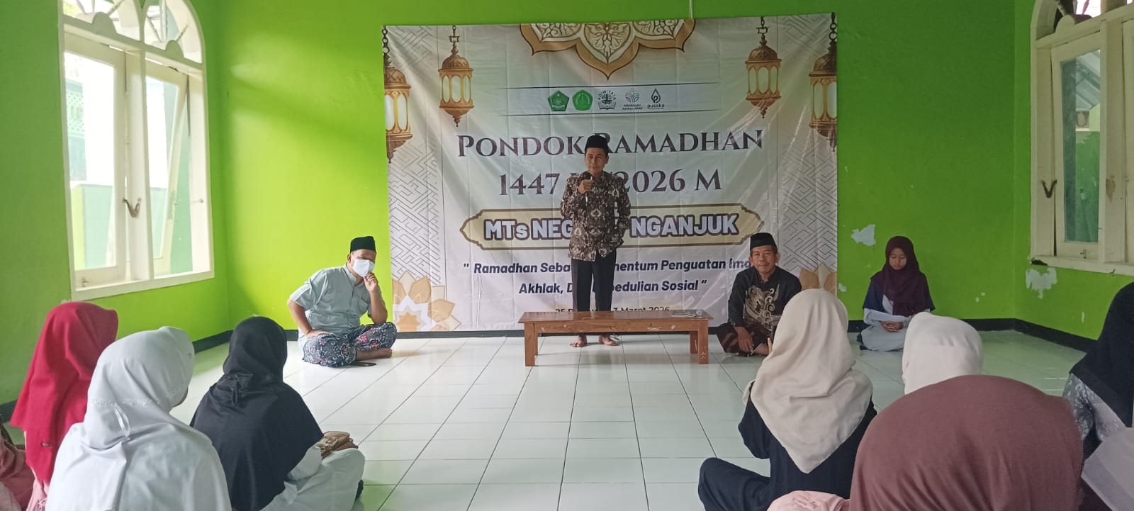 Nganjuk (25/02/2026) – MTsN 7 Nganjuk secara resmi menggelar dan membuka kegiatan Pondok Romadhon 1447 H dengan mengusung tema “Ramadhan sebagai Momentum Penguatan Iman, Akhlak, dan Kepedulian Sosial.” Kegiatan dibuka langsung oleh Kepala MTsN 7 Nganjuk, Bapak Mochammad Abdul Rasyid dan diikuti oleh seluruh siswa secara bergelombang dan akan berlangsung selama satu pekan.