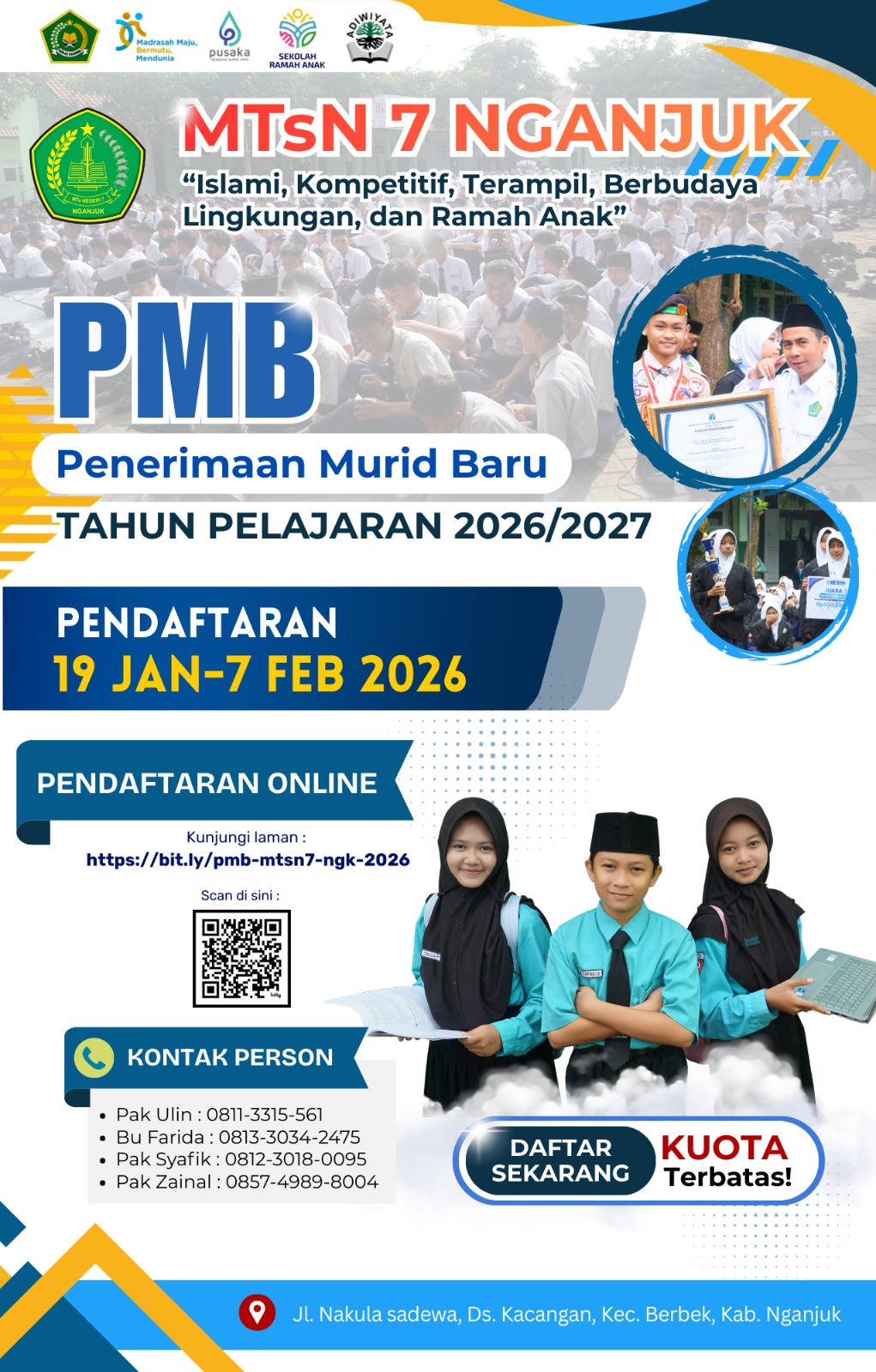 Berita Bidang Kesiswaan TIME SCHEDULE PENERIMAAN MURID BARU MTs N 7 NGANJUK TP. 2026-2027 adminmtsn7 January 18, 2026 About the Author adminmtsn7 Administrator Visit Website View All Posts Post navigation Previous: PENERIMAAN MURID BARU MTs N 7 NGANJUK TP. 2026-2027Next: Pengumuman Penerimaan Murid Baru Tahun Pelajaran 2026 – 2027 Leave a Reply Cancel replyYour email address will not be published. Required fields are marked *Comment * Name * Email * Website Save my name, email, and website in this browser for the next time I comment. Related Stories Berita Bidang Kurikulum Pengumuman Penerimaan Murid Baru Tahun Pelajaran 2026 – 2027 adminmtsn7 February 12, 2026 0 Berita Bidang Kesiswaan PENERIMAAN MURID BARU MTs N 7 NGANJUK TP. 2026-2027 adminmtsn7 January 17, 2026 0 Berita Bidang Humas Bidang Kesiswaan Bidang Kurikulum Jalan Sehat Meriahkan Hari Jadi ke-30 MTsN 7 Nganjuk adminmtsn7 December 13, 2025 0